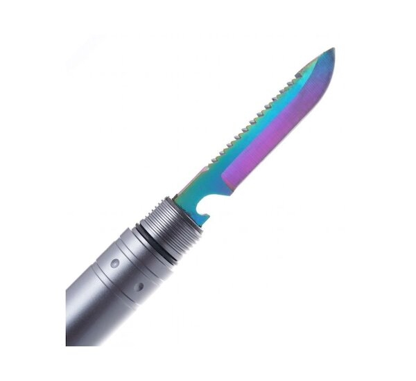 - rozbíječ skla nebo ledu - k poslednímu prvku rukojeti je přišroubován ostrý kovový trn, který může v nouzi zachránit život vám nebo vašim blízkým.