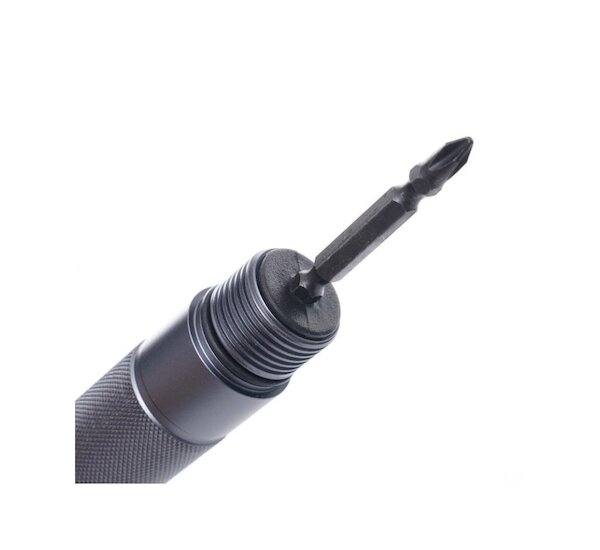 Pokud potřebujete dlouhý ostrý nástroj, můžete lopatku snadno odšroubovat z hřídele a umístit čepel nože na její místo.