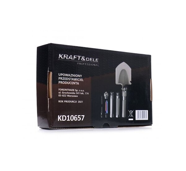 Rukojeť se skládá ze tří hliníkových částí. Spojují se podle potřeby šroubováním, můžete tak získat maximální délku lopatky až 77 cm. Celokovová konstrukce z oceli a hliníku je velmi odolná a lehká. Praktické pouzdro umožňuje pohodlné uložení a přenášení lopatky a příslušenství.