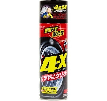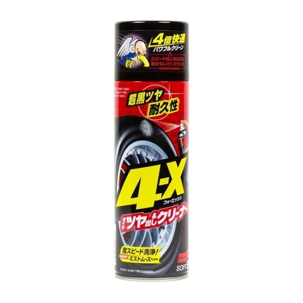 Soft99 4-X Tire Cleaner je rychloaplikační čistič a sealant pneumatik a dalších pryžových a plastových povrchů automobilu. Jeho jedinečný systém rozprašování mlhy a pěny urychluje proces oživení pneumatik a zkracuje pracovní dobu na čtvrtinu oproti běžným produktům.
