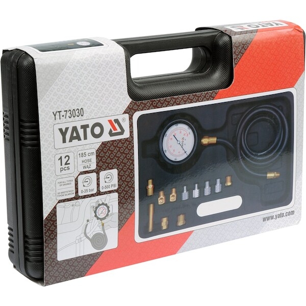 Souprava k měření kompresního tlaku oleje, 12ks, 0-35bar Yato YT-73030