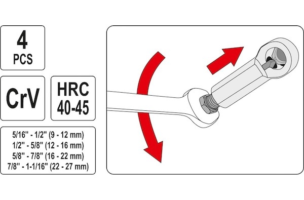 V soupravě jsou 4 odstupňované hlavice pro demontáž matic od 9 - 27 mm.