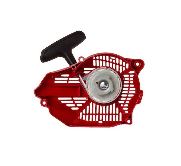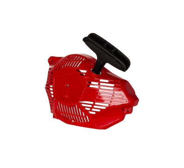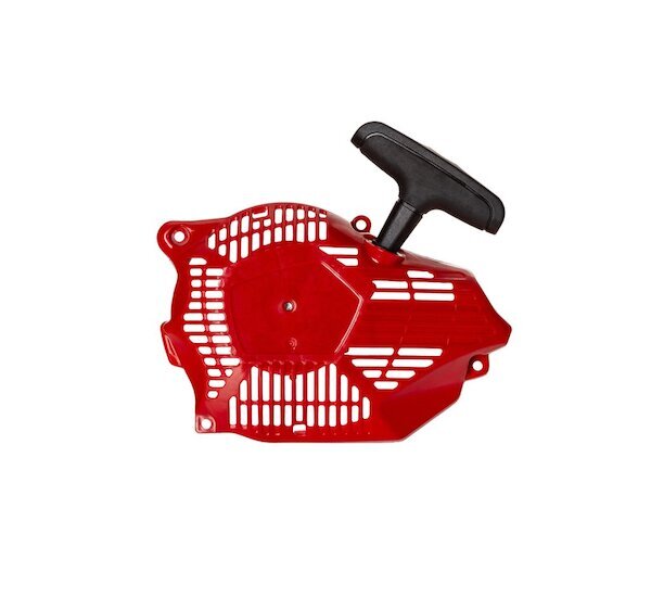 Startér se skládá z několika důležitých částí - plastového krytu, navíjecího mechanismu s pružinou, odolného startovacího lanka a ergonomické rukojeti pro pohodlné uchopení.