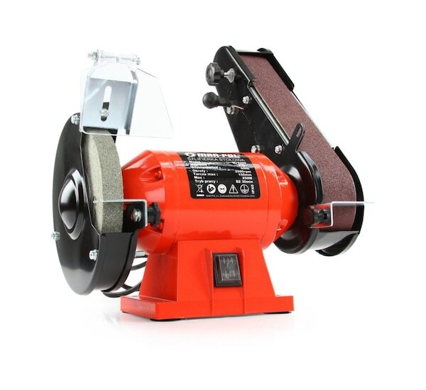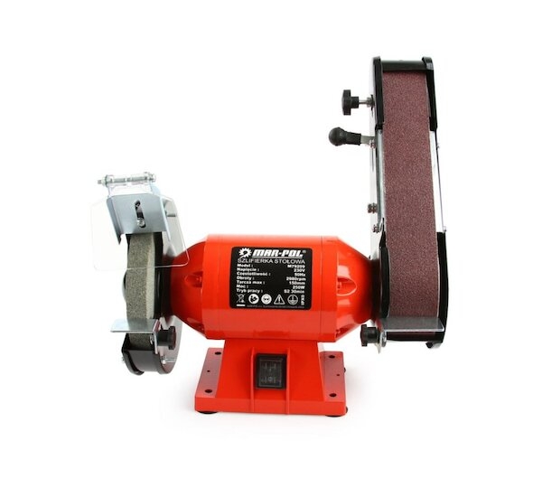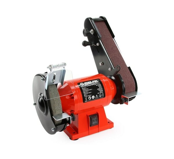 Stolní kombinovaná bruska navržená pro domácí kutily se používá k ručnímu zpracování různých obrobků. Díky konstrukci skládající se z kotouče a pásu je bruska MAR-POL vhodná pro broušení, řezání, ostření, ale i řezání a leštění. Ergonomický design zajišťuje stabilitu díky čtyřem protiskluzovým nožičkám s přísavkou. Speciální průhledný kryt umožňuje uživateli bezpečně sledovat proces broušení. Energeticky úsporný 250 W motor vyrobí až 2950 otáček za minutu.