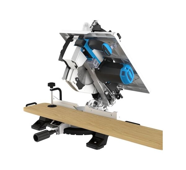 Kombinovaná (stolní - pokosová) pila, určená k přesnému řezání stavebního dřeva a deskových materiálů.