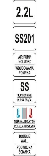 Termoska je vybavena čerpadlem, které usnadňuje přesné nalévání nápojů. Na druhé straně je sací trubice vyrobena z nerezové oceli, což umožňuje udržovat ji bezvadně čistou bez nadměrného úsilí. Termoska YATO je také vybavena ochranou proti odkapávání, která zabraňuje rozlití nápojů. Praktická plastová rukojeť usnadňuje přepravu termosky.