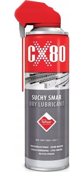 CX80 Dry Lubricant with Teflon je vysoce kvalitní sprej určený pro suché mazání pohyblivých částí, které vyžadují hladký skluz a ochranu před opotřebením. Tento transparentní sprej s obsahem teflonu (PTFE) poskytuje dlouhodobou ochranu, snižuje tření a zabraňuje usazování prachu a nečistot. Díky DUO hlavici umožňuje přesnou aplikaci i rozptýlené nanášení.