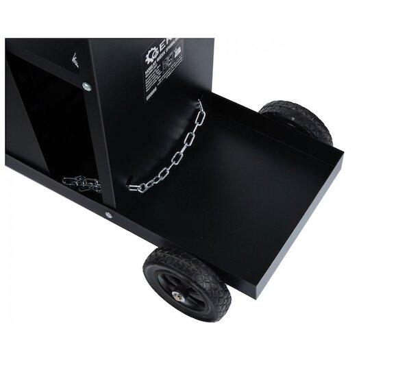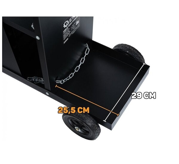 Tento vozík je vyroben z prvotřídní práškově lakované oceli, která zajišťuje maximální odolnost vůči korozi, poškrábání a dalšímu opotřebení. Díky této konstrukci zvládne vozík bez problémů unést těžké vybavení, jako je svářečka, plynová láhev a veškeré nástroje, které je nutné mít po ruce.