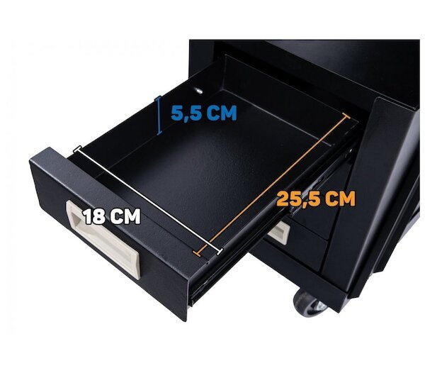 - čtyři hladce vysouvatelné zásuvky – perfektní pro menší předměty, jako jsou elektrody, šroubováky, klíče nebo jiné drobné nástroje. Vodítka zásuvek zajišťují plynulý pohyb