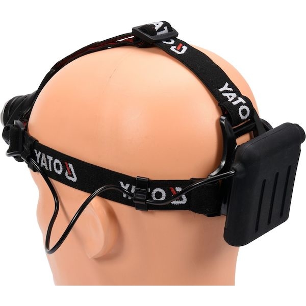 Napájení 4x baterie AA (nejsou přiloženy) v pouzdře na zadní straně hlavy. Upevňovací popruhy na hlavu lze pomocí přezek upravit dle potřeby.