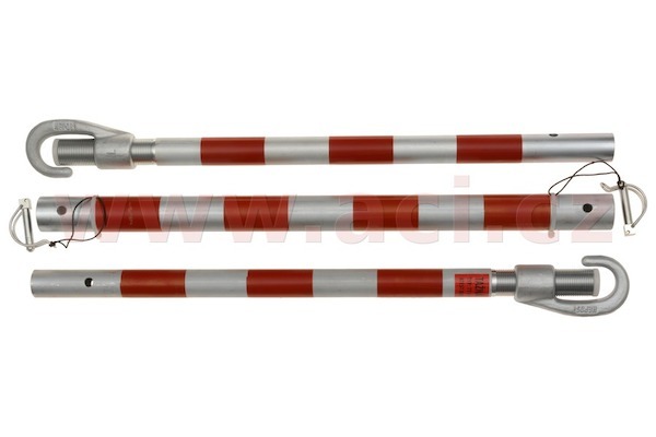 Tažná tyč obsahuje 2× koncové závitové trubky s kovanými háky na koncích, 1× středovou trubku a jejich zajištění se provádí pérovými kolíky.