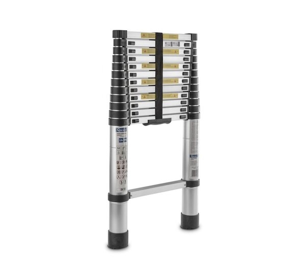 Hliníkový teleskopický žebřík je díky teleskopickému systému velmi oblíbený u většiny řemeslníků, opravářů i majitelů domů a zahrad. Žebřík má ve složeném stavu minimální nároky na prostor, zabere velmi málo místa, manipulace s ním je snadná a pohodlná. Speciální konstrukce a vhodně zvolené materiály zaručují vysokou stabilitu i při plném rozložení žebříku a dovoluje maximální zatížení 150 kg a rozložení do 3,8 m.