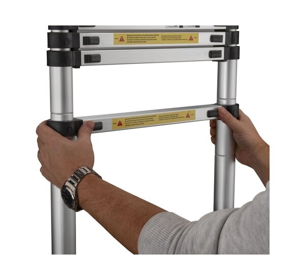 Teleskopický žebřík se skládá z částí, které lze vysunout nebo zasunout, což vám umožní upravit délku žebříku. Díky tomu je žebřík univerzální a lze jej přizpůsobit různým úkolům, jako je práce v různých výškách nebo na těžko dostupných místech. Žebřík je vybaven uzamykacími mechanismy, které drží sekce žebříku na místě a zajišťují stabilitu a bezpečnost při používání žebříku. To pomáhá zabránit náhodnému sklouznutí částí žebříku.