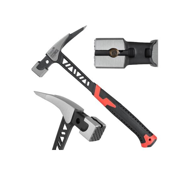 Oboustranná pracovní hlava nabízí maximální funkčnost. Úderová plocha je opatřena zářezy pro lepší úchop hřebíku – zabrání prokluzu a umožní přesné zatloukání jednou rukou. Druhá strana je tvarována jako vytahovač s agresivním profilem pro snadné páčení a odstranění hřebíků, spon i jiných spojovacích prvků.