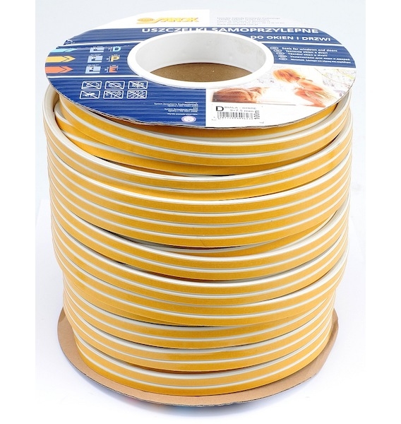 Těsnění do oken a dveří samolepící 9x7,4mm TYP D bílé 100M