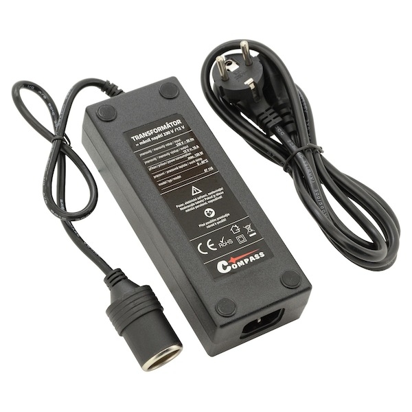 Výstup měniče je osazen zásuvkou autozapalovače 12V a vstup zástrčkou 230 V evropského typu.