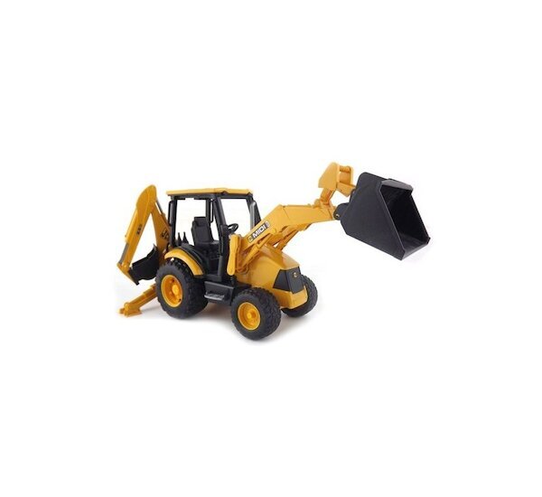 Velice pěkný a velký model víceúčelového stavebního traktoru a předním nakladačem a zadní bagrovou lžící. Měřítko: 1:16, rozměry: 41,1 x 12,2 x 16,8 cm, doporučený věk: 3+, materiál: ABS plast.