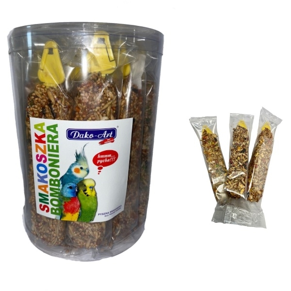 Doplnění každodenní stravy o vynikající zdroj energie a vitality. Tyčinky poskytují pro papoušky zábavu na dlouhé hodiny a možnost obrušování zobáku.