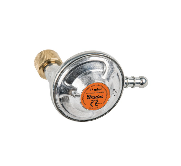 Jednostupňový, úhlový, regulátor tlaku plynu na turistické propan-butanové láhve se závitem GW 3/8 "L a konektorem na hadice 9-10mm. Určeno pro turistické účely k napájení plynových spotřebičů z láhve vybavené manuálním otvíráním a zavíráním ventilu. Úhlový design regulátoru zabraňuje ohýbání hadice a umožňuje snadnou instalaci v různých turistických zařízení.