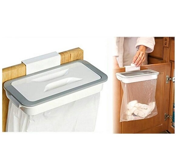 Praktický držák sáčků na odpadky k zavěšení na přední stranu skříně. Perfektní řešení, když je skříňka pod dřezem příliš malá. Usnadňuje následné třídění odpadu. Okamžitá instalace - stačí zavěsit konstrukci na horní část čela skříně a připevnit sáček na odpadky. Součástí je také odpovídající víko, aby se do sáčku nedostal nepříjemný zápach.