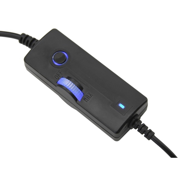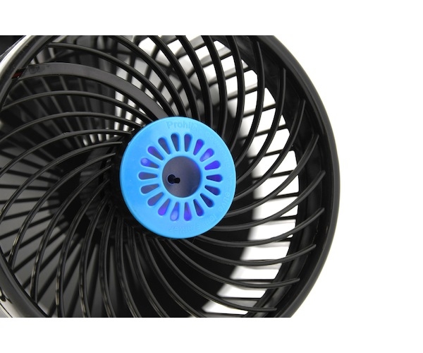 Napájení 12 V ze zásuvky autozapalovače. Ventilátor disponuje plynule volitelnou rychlostí otáček a vypínačem ionizátoru. Díky dvěma kulovým kloubům je snadné větrák natočit prakticky jakýmkoliv směrem.