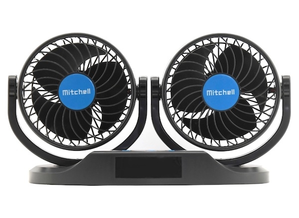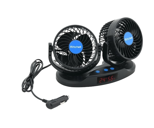 Ventilátor MITCHELL DUO 2x130mm 12V na palubní desku s teploměrem