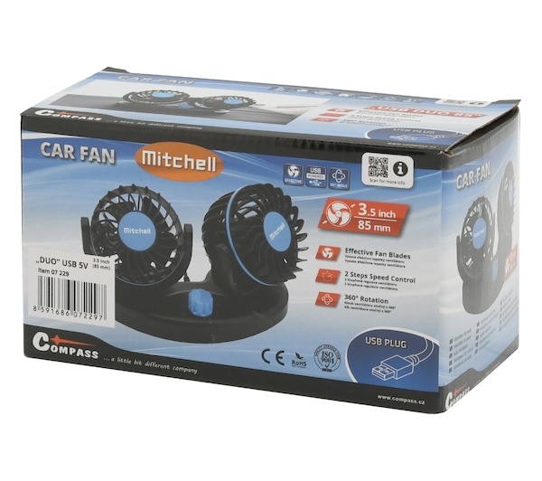 Ventilátor MITCHELL DUO 2x85mm USB 5V na palubní desku