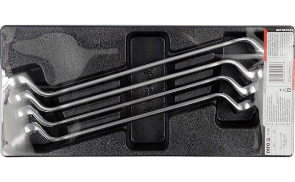 Vložka do zásuvky - klíče očkové ohnuté 4ks 21-32mm, YATO Vložka do zásuvky pojízdné skříňky do dílny. Vložka obsahuje 4 ks očkových klíčů v rozměru 21-32 mm. Praktická vložka do zásuvky vhodná pro dílenský vozík.