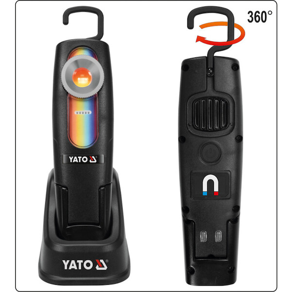 YT-08509 je přenosná lampa, která dokonale reprodukuje podmínky přirozeného světla. Moderní COB LED zdroj s velmi vysokým indexem podání barev CRI = 95, podobným slunečnímu záření, umožňuje mimo jiné dokonalý výběr té správné barvy a odstínu laku. automobilový průmysl. Usnadňuje kontrolu barvy podle šablony a kontrolu samotného krytí.