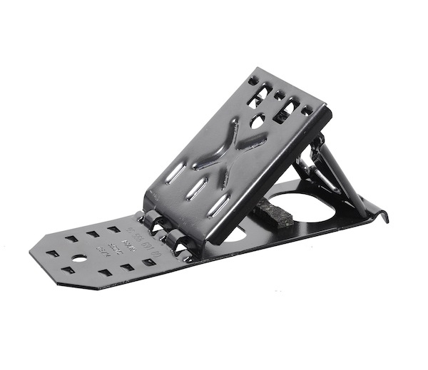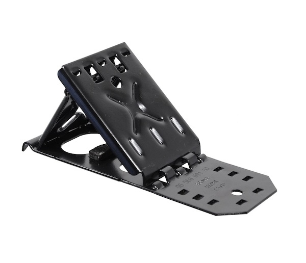 Skládací klín k zabezpečení vozidla, či tažného zařízení proti pohybu, celokovový, černě lakovaný.