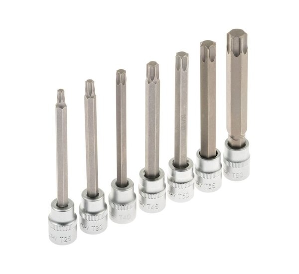 Zástrčné hlavice TORX 3/8", rozměry T25 - T60, prodloužené 110 mm, sada 7 ks SATRA
