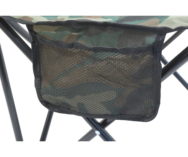 Židle je lehce a rychle složitelná a je vybavena čtyřmi opěrnými nohami, které lze uchytit k zemi za použití stanových kolíků a tím významně zvýšit stabilitu. Židle nabízí pohodlné a stabilní posezení.